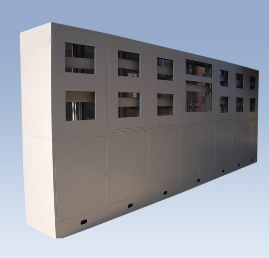 選用材質(zhì):立柱及主框架采用優(yōu)質(zhì)冷軋鋼板厚度為1.5-2.0mm,門板及面板采用1.2mm優(yōu)質(zhì)冷軋鋼板,保證安裝強(qiáng)度。